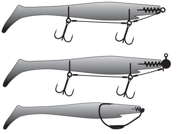 It's possible to add weight to this type of rig to fish deeper waters or use it unweighted to fish shallow waters, resulting in a more gliding action.
