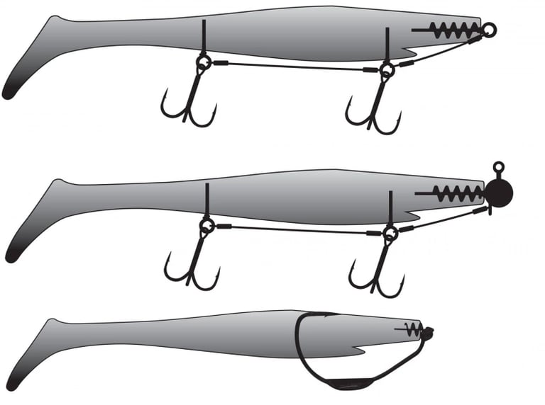 There are several types of rigs for pike fishing in Sweden. For small lures, up to about 15cm, the ideal is to use a jig head equipped with a single hook.